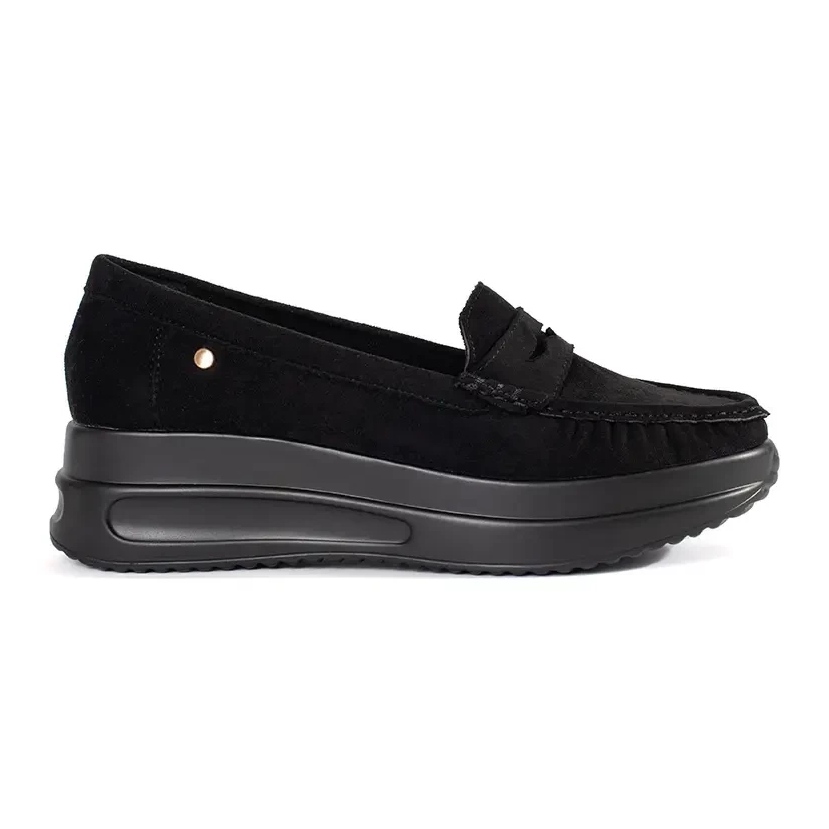 Meghívjuk Önt, hogy fedezze fel az egyedi velúr mokaszinokat egy vastag talpon a jó hírű Goodin gyártó részéről. Ezek az elegáns fekete női cipők ötvözik a stílust és a kényelmet, tökéletesen illeszkednek mind a mindennapi stílusban, mind a formálisabb kombinációkban.