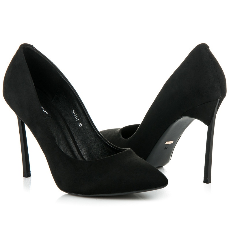 VICES velúr magassarkú - klasszikus divatos változatban. A fekete, környezetbarát velúr, a vékony hegy és a 10,5 cm-es tűsarkú időtlen modellt alkot, amely tökéletes estére, ünneplésre vagy elegáns eseményre.