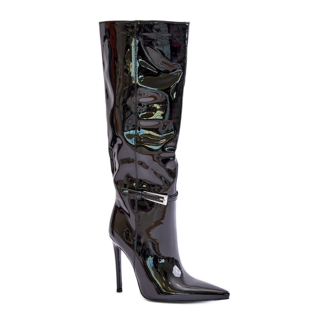 Részletek: Szabadalmaztatott szigetelt csizma magas sarkú csattal, fekete Tameliae