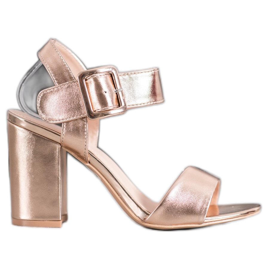 Sarokmagasságuk lenyűgöző 9,5 cm, ami minden nőnek önbizalmat és rendkívül nőies méltóságot ad majd az ünnepélyes rendezvényeken. A sima szintetikus talp és a nyitott sarok kényelmes viseletet biztosítanak, a csat pedig megkönnyíti a cipő fel- és levételét.