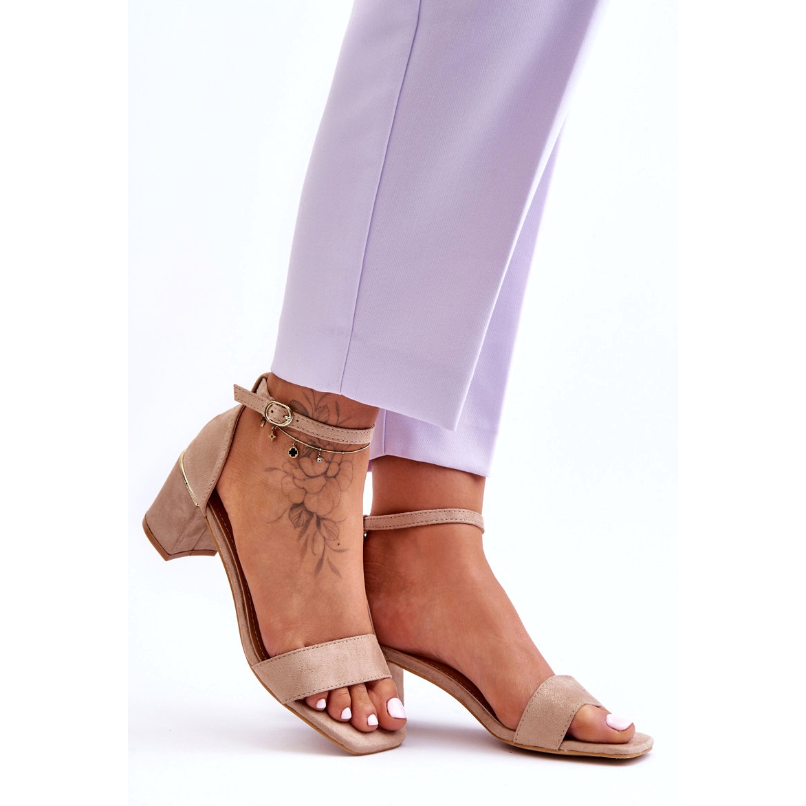 Részletek: Szandál Egy Bézs Stabil Sarkú