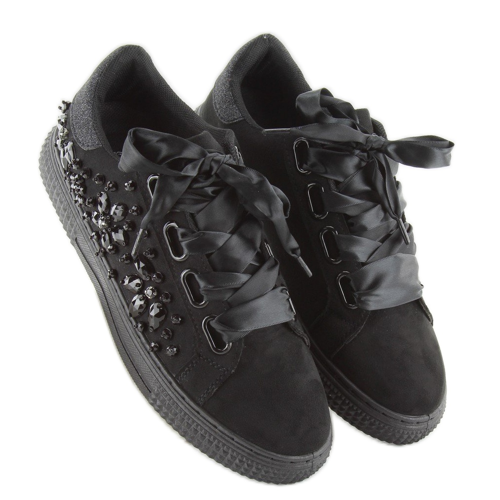 Inna marka Szatén tornacipő 16-535 Fekete fűzős