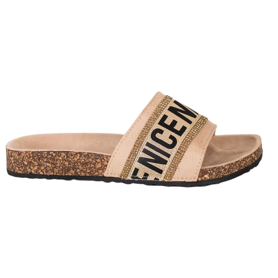 Evento Evento Szép kristály papucs bézs