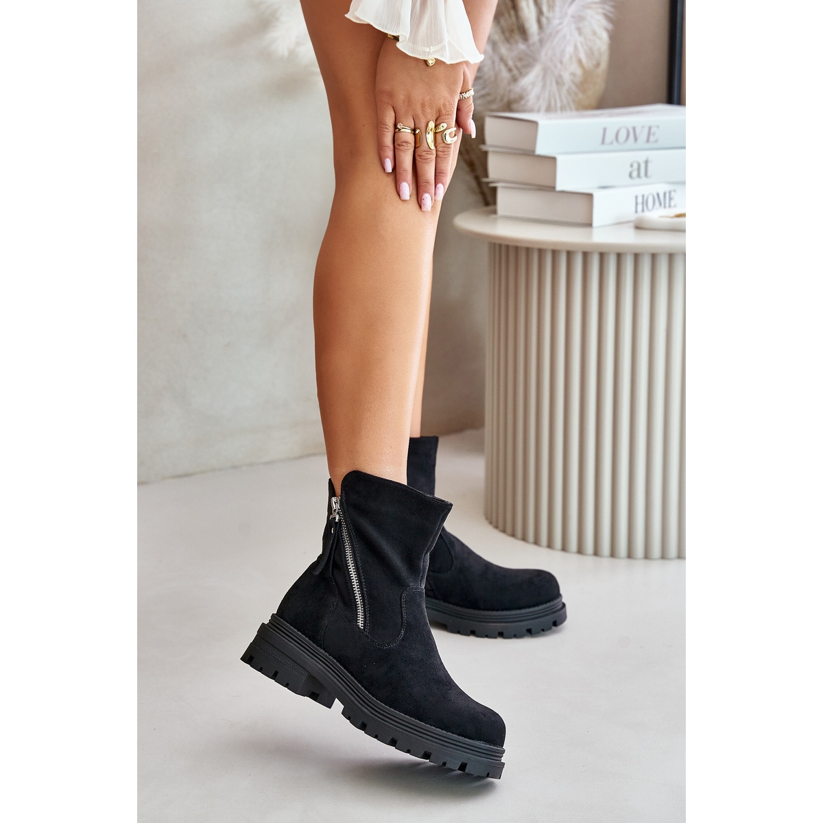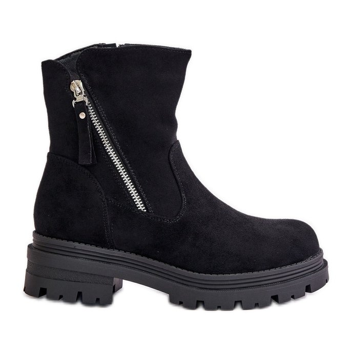 Részletek: Szigetelt bokacsizma lapos sarkon öko-velúrból, fekete reloma