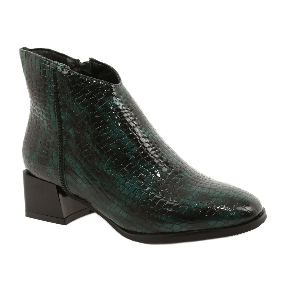 M. DASZYński MR2130-8 "Zöld"-szigetelt női csizmák, amelyek kombinálják a kényelmet a divatos akcentussal. Ökológiai bőrből készült, kissé lakkozott kivitelben, tiszta állati motívummal, zöld és fekete árnyékban, ezek eredeti kiegészítése az alkalmi stílusokhoz. A finom dekoráció látható zár formájában modern karaktert ad a cipőnek.