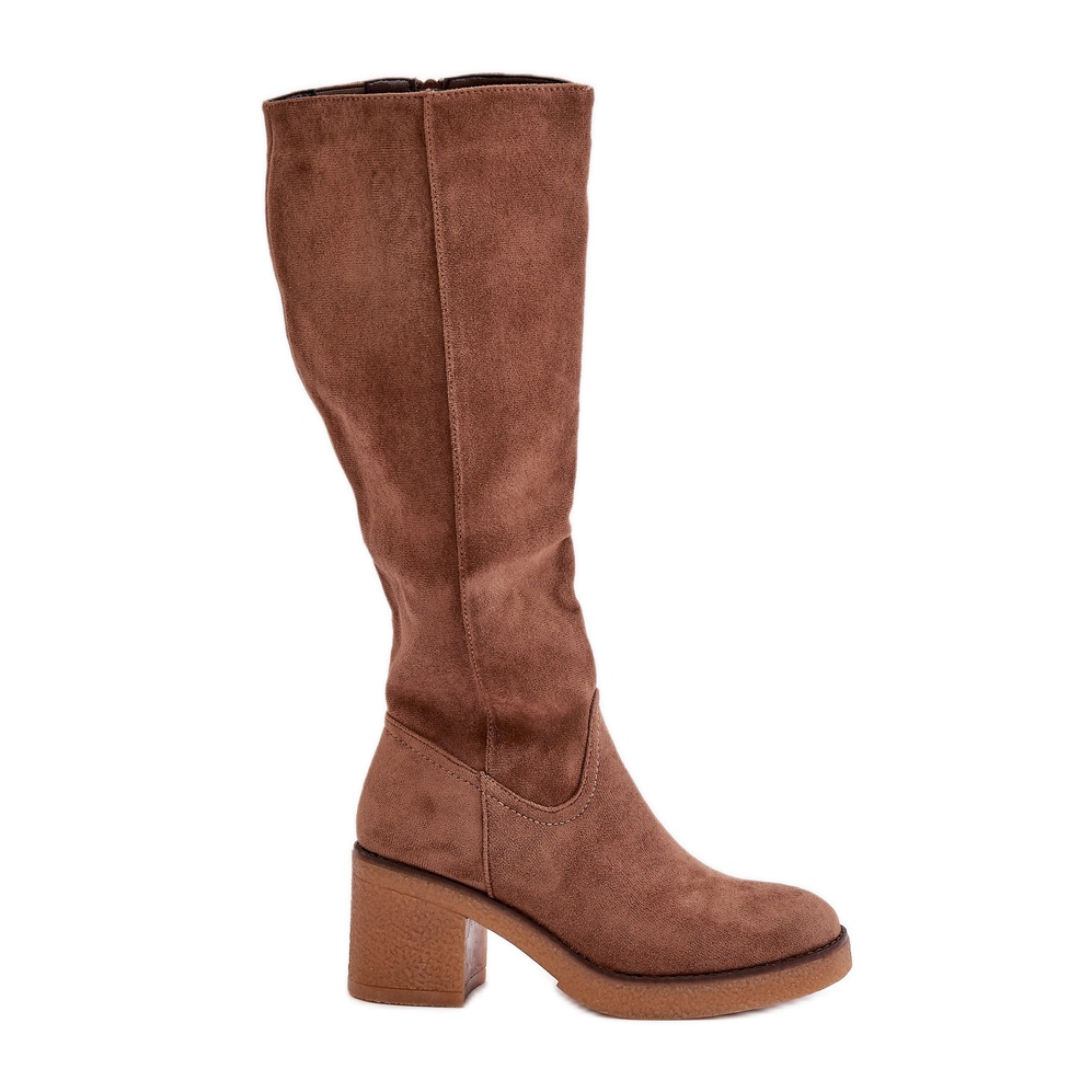 Részletek: Jezzi Szigetelt Eco Suede térd feletti magas sarkú csizma, barna Leamirael