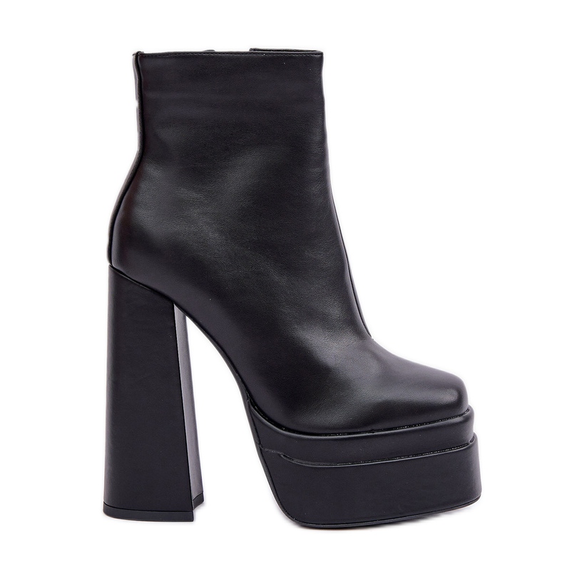 Inna marka Szigetelt fekete bokacsizma masszív platformon és magassarkúval