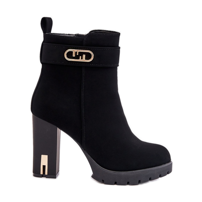 A sarok 10 cm -es oszlop formájában biztosítja a stabilitást és a kényelmet, és a szigetelés lábbeli takaróval garantálja a hőt még a legnagyobb fagyok során is. A cipő központja gondosan befejeződött, és a felső részét finom övvel díszítették, amelynek arany részlete van, amely egyedi karaktert ad nekik.