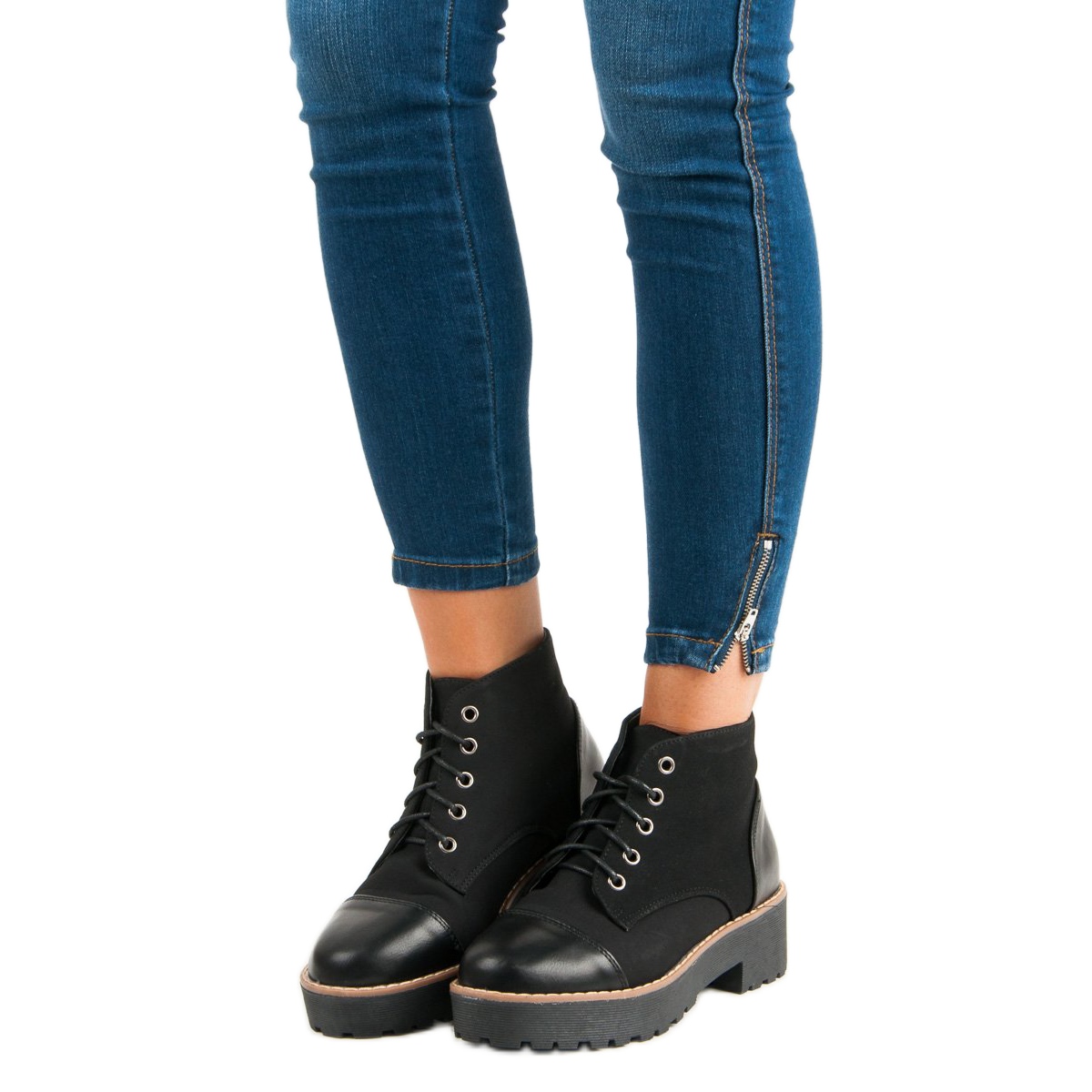 A fekete színű rock munkáscsizma minden divatrajongó ruhatárában kötelező darab. Ezek a stílusos cipők eredeti dizájnnal rendelkeznek, amely lenyűgözi modernségét és karakterét. A vastag, szemet gyönyörködtető 3 cm magas saroknak és a szilárd platformnak köszönhetően ezekben a csizmákban minden lépés a kényelem és a divat kombinációja.