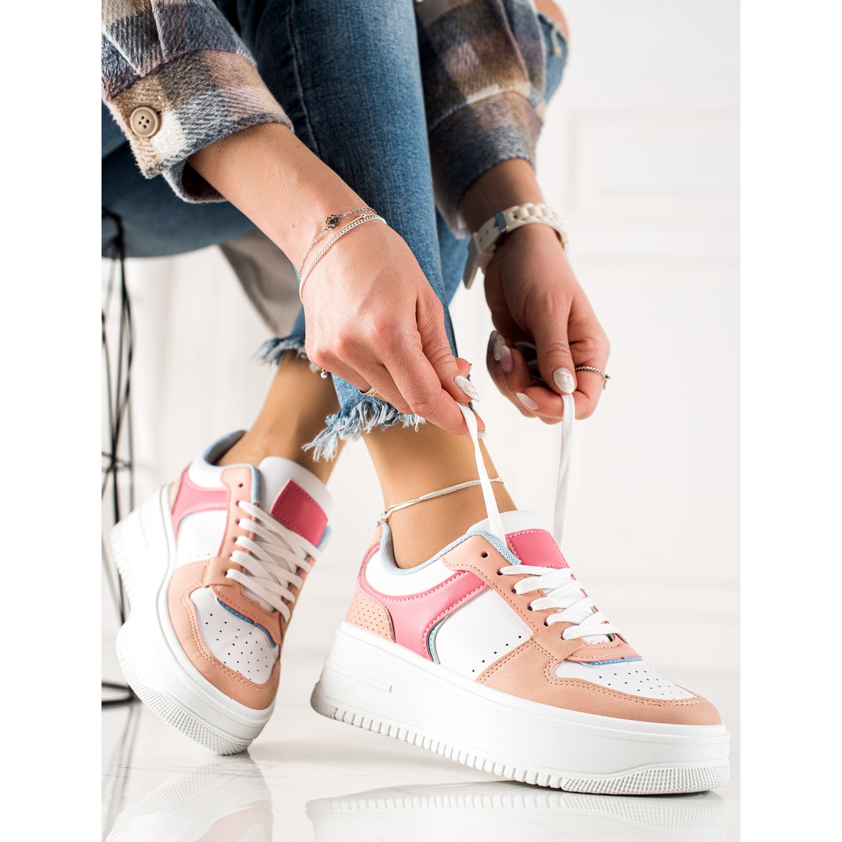 Részletek: TRENDI Színes, divatos tornacipő bézs fehér kék rózsaszín