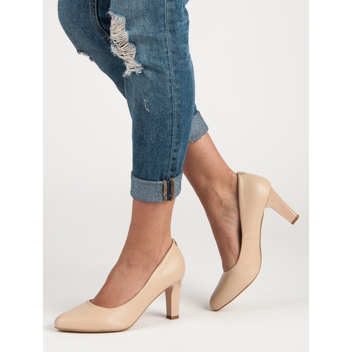 A szivattyúk gondosan kiváló minőségű ökológiai bőrből készültek, amely nemcsak esztétikus megjelenést, hanem tartósságot is biztosít. A cipők belseje természetes bőrből készült kényelmes betéttel van ellátva, amely hosszabb viselés esetén is jelentősen növeli a használat kényelmét.