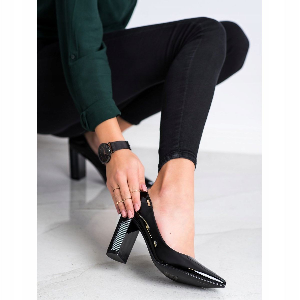A szivattyúk kiváló minőségű anyagokból készülnek, a felső réteg 100% műbőr, a bélés pedig 50% természetes bőr, ami biztosítja a viselési kényelmet és a tartósságot. Hegyes lábujjuk eleganciát ad, a lakkozott felület pedig tökéletes választási lehetőséget kínál esti kirándulásokhoz és ünnepségekhez. A 8,5 cm-es saroknak köszönhetően a nők elegáns sziluettet kapnak, ugyanakkor stabilnak és kényelmesnek érzik magukat.