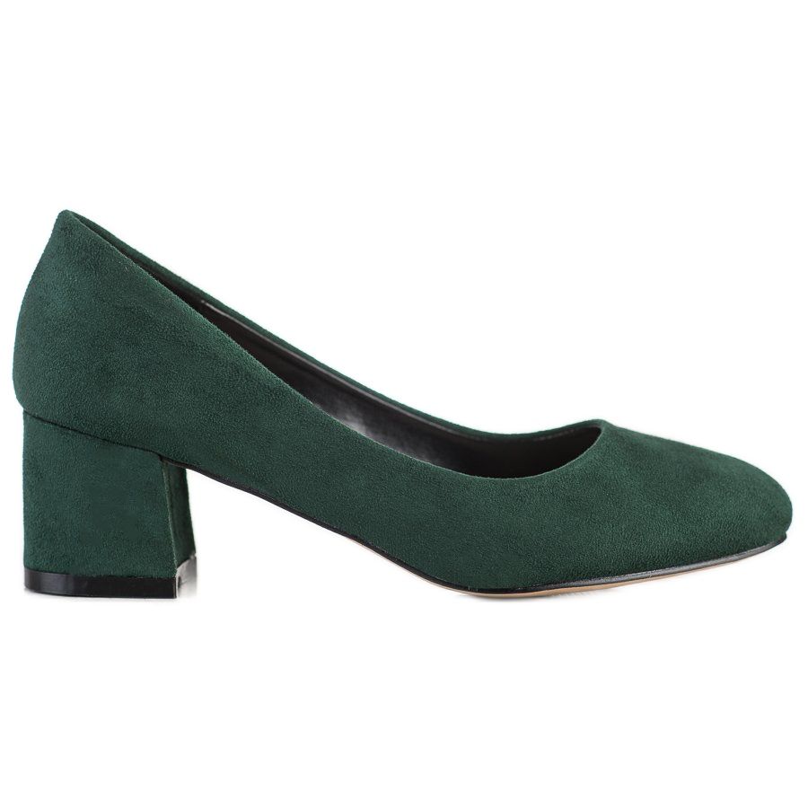 A széles zöld sarkú Sabatina pumpák elegáns kiegészítők minden nő számára, aki ötvözni szeretné a kényelmet a klasszikus stílussal. A kiváló minőségű velúrutánzatból készült cipők puha, zárt sarokpulttal rendelkeznek, amely még hosszabb viselés esetén is kényelmet biztosít. A lenyűgöző, 5,5 cm magas oszlop finom kecsességet kölcsönöz, ugyanakkor stabilitást biztosít minden lépésnél.