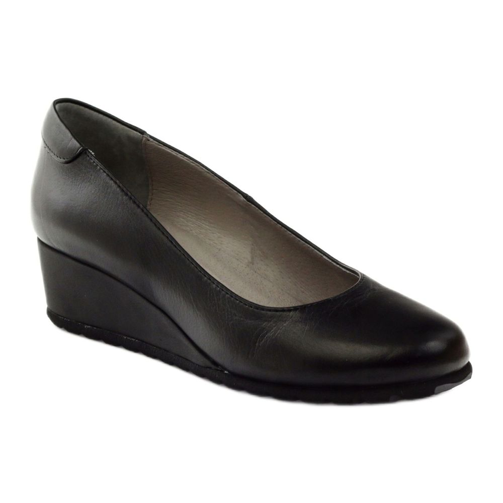 Az Edeo 2354 ékszivattyúk fekete színben tökéletes választás a mindennapi használat során eleganciát és kényelmet kereső nők számára. A legjobb minőségű természetes bőrből készült cipők a klasszikus dizájnt és a modern megoldásokat ötvözik, így ideális kiegészítők lehetnek különféle alkalmakra - munkára és hivatalos találkozókra egyaránt.