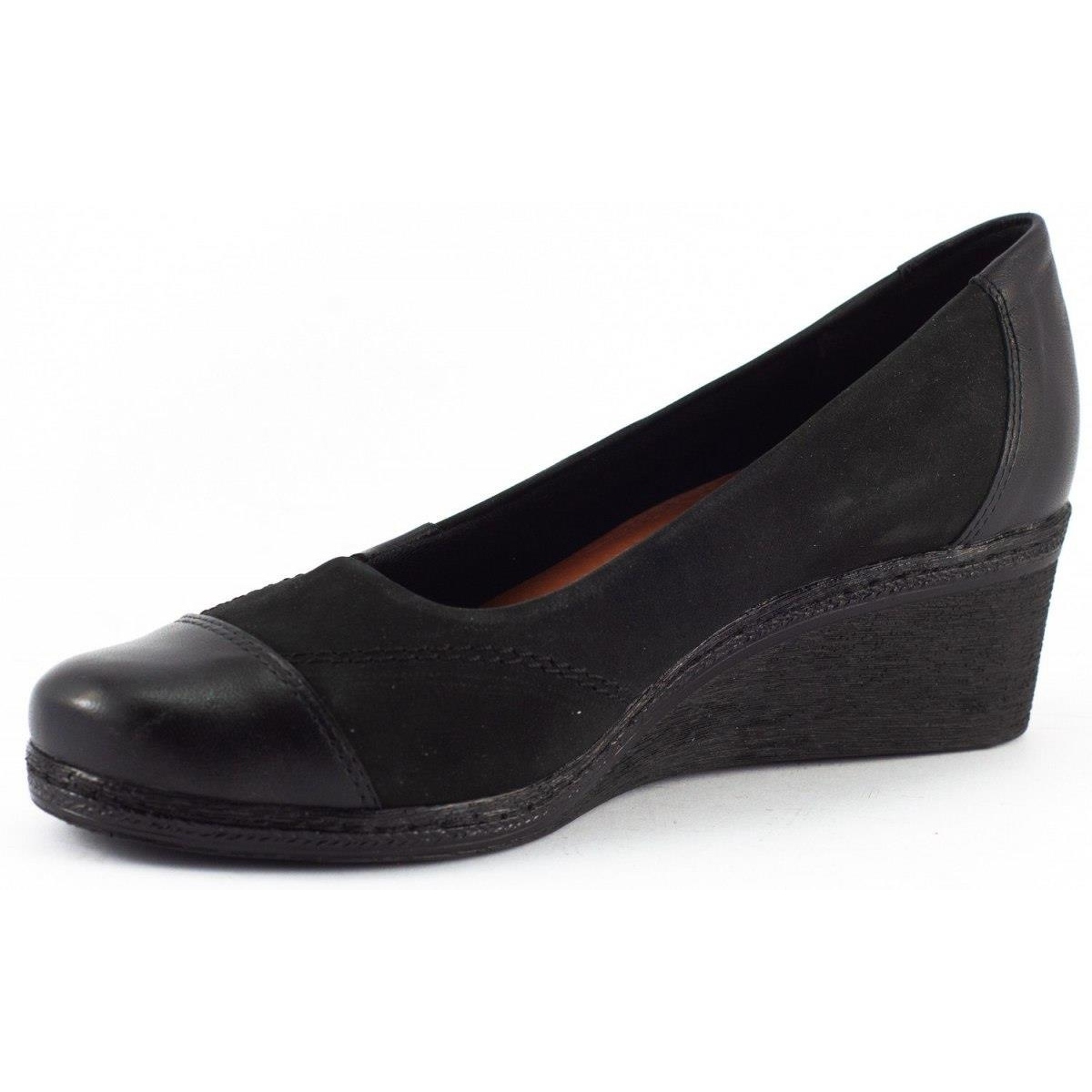Fedezze fel az eleganciát és a kényelmet a fekete Pulso 361 női ékpumpákban. Ezek az elegáns, kiváló minőségű természetes bőrből készült cipők a klasszikus dizájnt modern akcentussal ötvözik, így bármilyen stílushoz tökéletesek.
