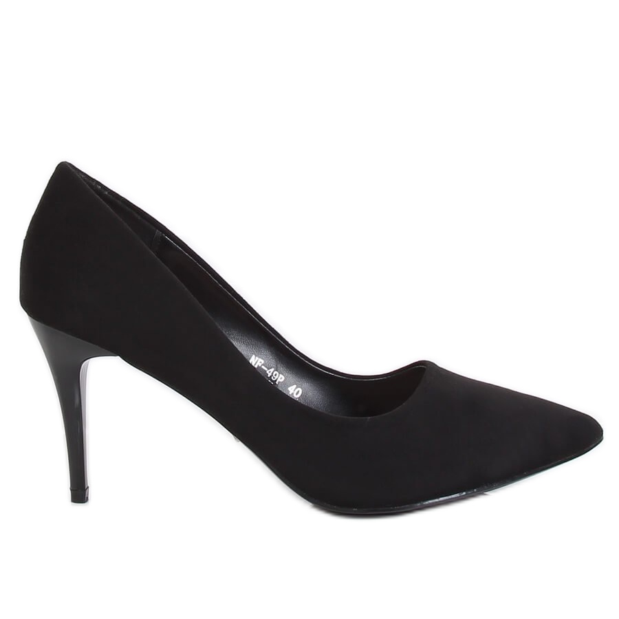 Fekete pumpák kényelmes magassarkú NF-49P Black tökéletes választás a klasszikus és elegáns dizájnt kereső nők számára. Az ökológiai velúrból készült cipők egyszerűségükkel és időtlen stílusukkal gyönyörködnek. A karcsú, 8,5 cm-es sarok nem csak nőiességet kölcsönöz, hanem tökéletesen meghosszabbítja a lábakat, így minden stílus egyedi karaktert kölcsönöz.