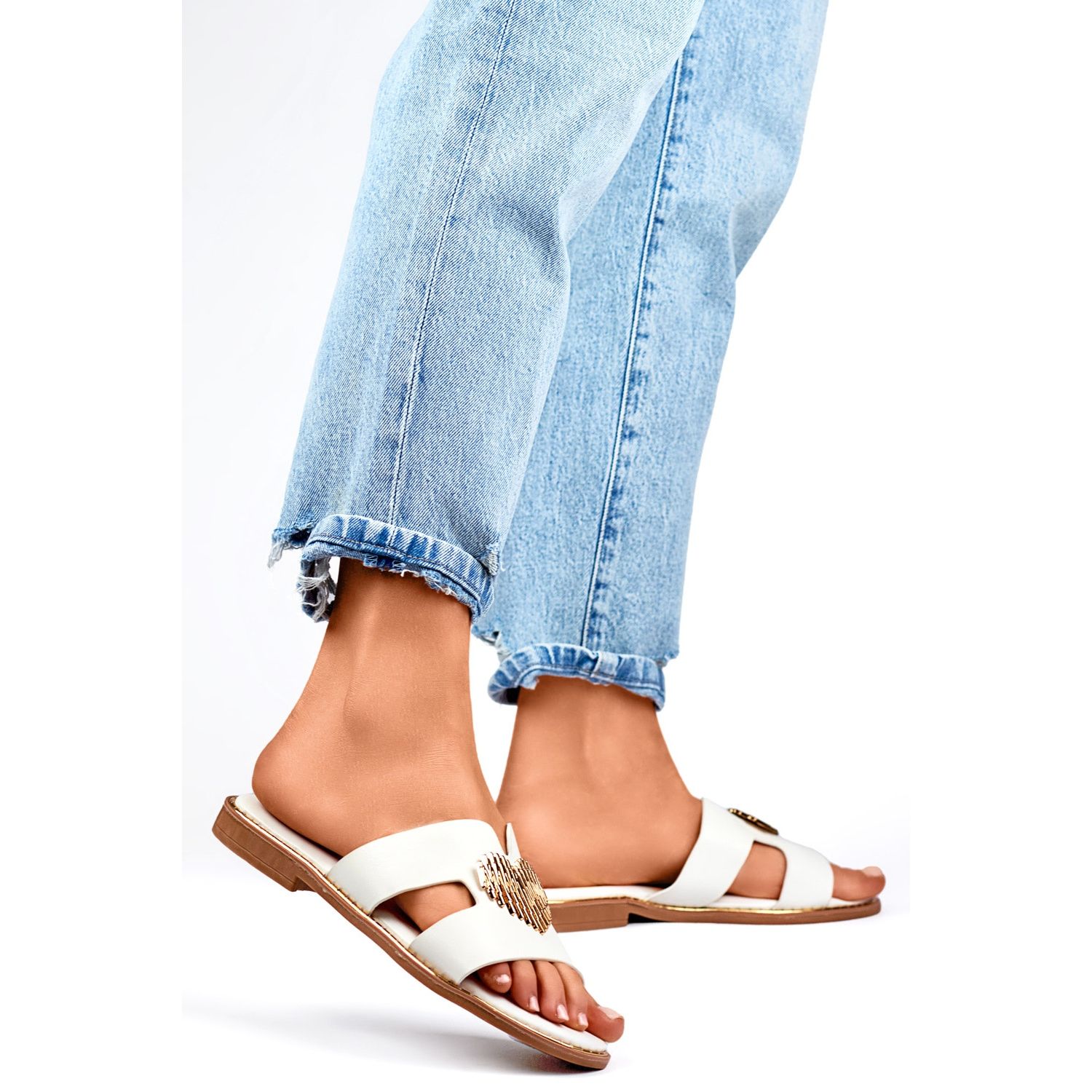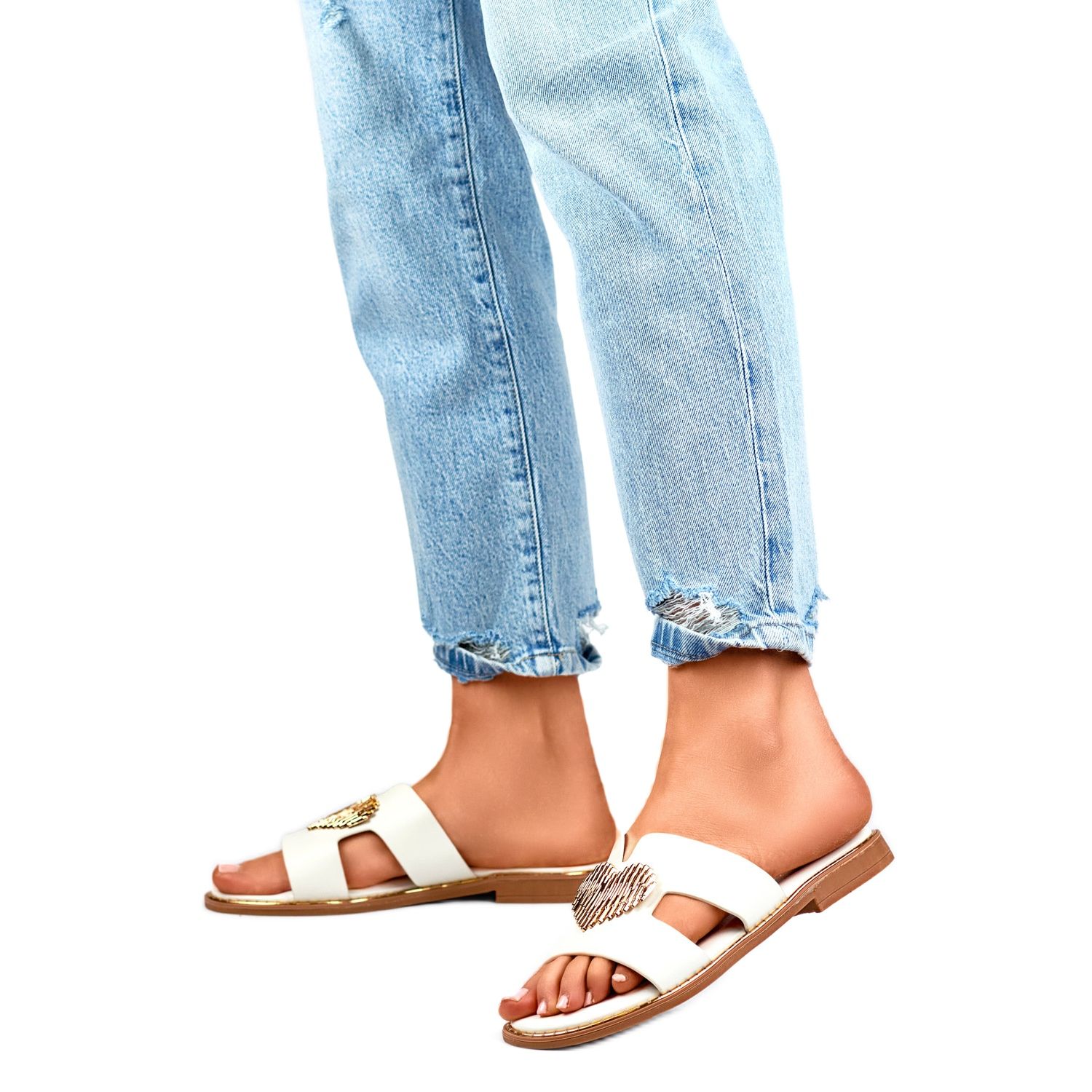 Részletek: Szívvel díszített női papucs KK-731W fehér