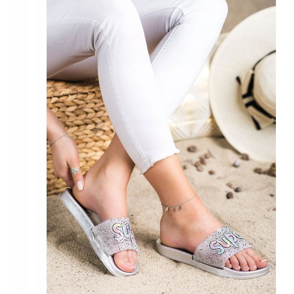 Fedezze fel a SHELOVET flip-flop legújabb modelljét, amely tökéletesen illeszkedik a tavaszi-nyári trendekhez! Az ezüst flitteres flip-flop tökéletes választás azoknak a nőknek, akik a kényelmet a divatos megjelenéssel szeretnék ötvözni. A felcsúsztatható kialakításnak és a nyitott saroknak köszönhetően ezek a papucsok könnyű felhelyezést és tökéletes illeszkedést biztosítanak a lábfejhez.