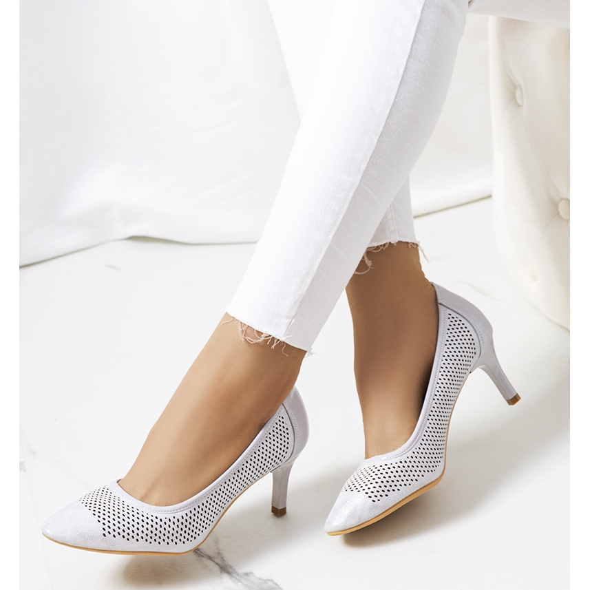 Inna marka Szürke, áttört pumpák Carling sarkon ezüst