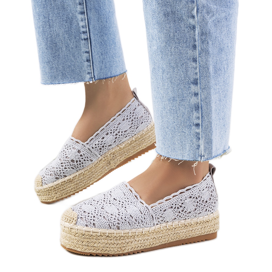 Részletek: Szürke csipke espadrillák az Akker platformon