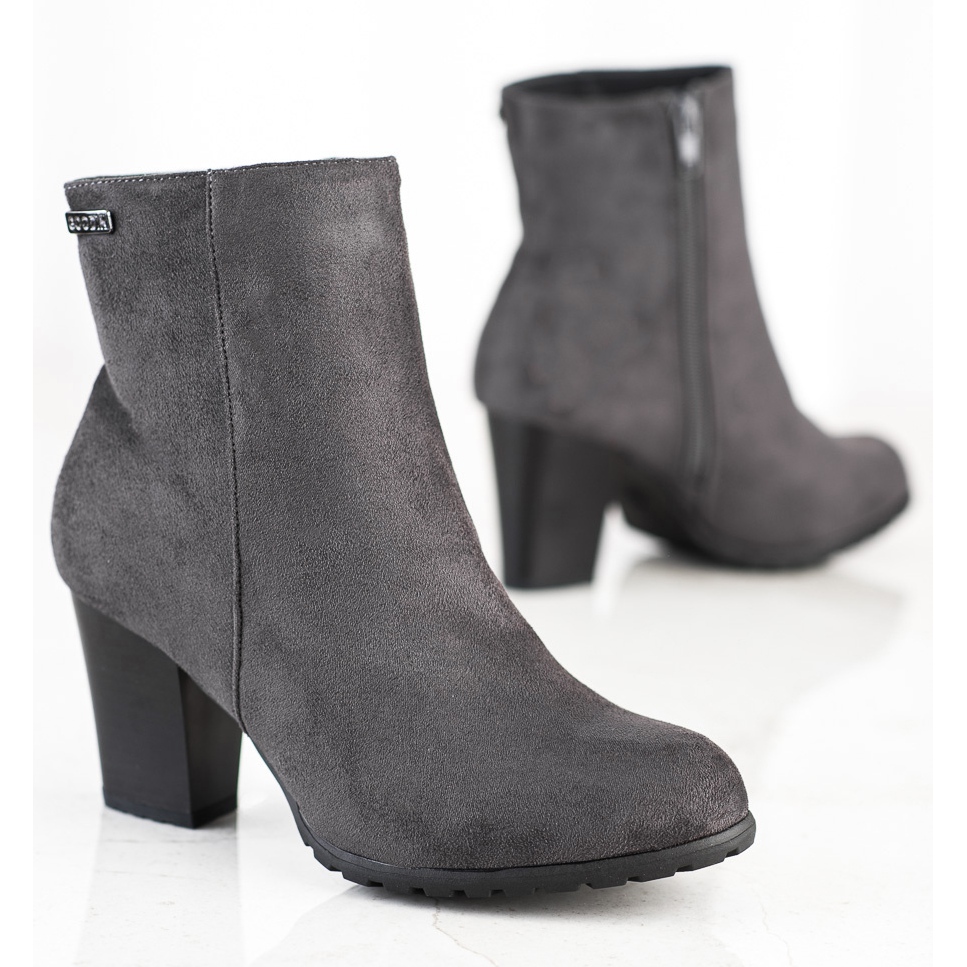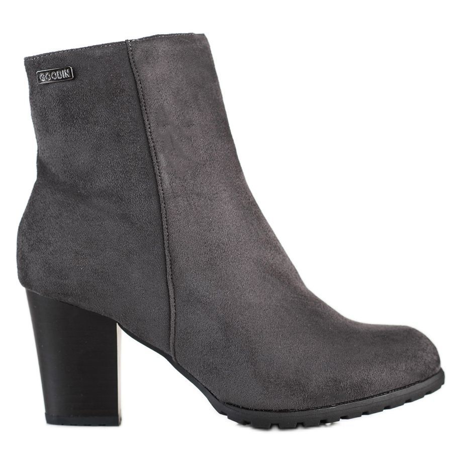 Bemutatjuk a Goodin márka szürke, magas sarkú bokacsizmáját - tökéletes választás minden nő számára, aki értékeli az eleganciát a kényelemmel kombinálva. Ez a stílusos szürke csizma tökéletes kiegészítője lesz minden őszi és téli stílusnak.