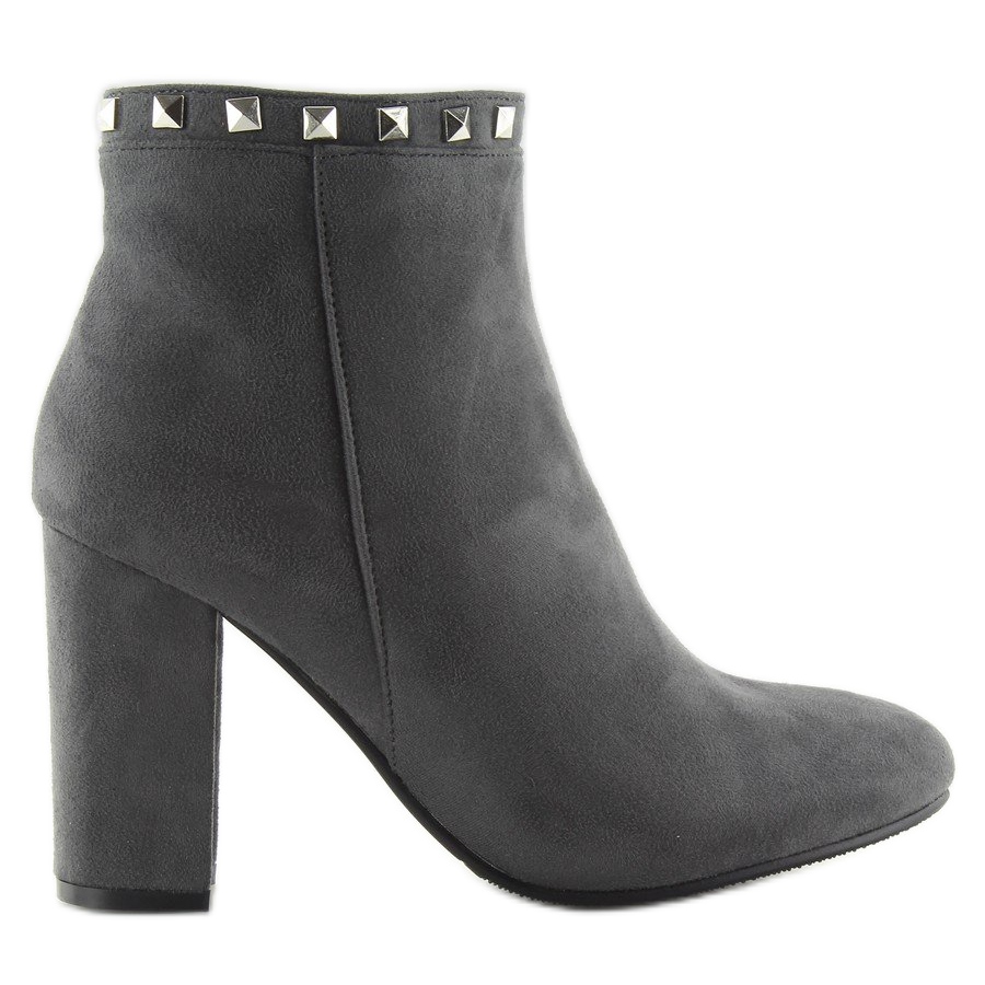 Fedezze fel az elegáns szürke árnyalatú, szegecsekkel ellátott, egyedi magas sarkú bokacsizmát, amely tökéletes kiegészítője lesz ruhatárának! Ez a klasszikus női bokacsizma ötvözi a stílust és a kényelmet, a stabil 9 cm-es blokksarok pedig lehetővé teszi, hogy még egy hosszú nap során is élvezze a kényelmet.