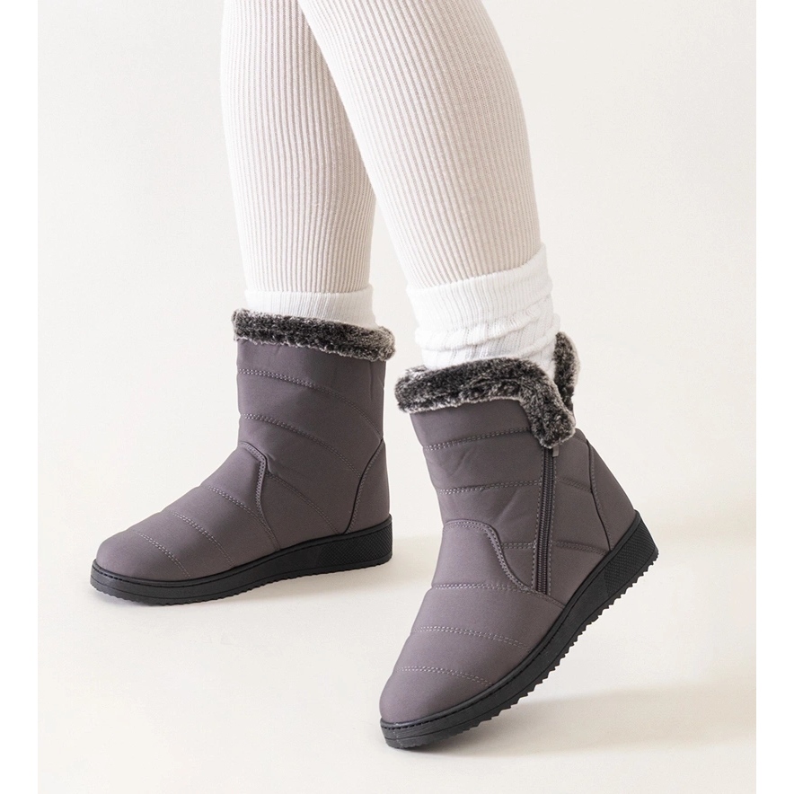 Fedezze fel a kényelmet és a stílust téli hónapokban, szürke hócsizmával, amelyet Khit szőrme díszített. Ezek az egyedi cipők egyesítik a modern dizájnt a funkcionalitással, ami nagyszerű választást jelent a hideg napok számára. A kerek szerszámnak és a 3 cm magas magasságnak köszönhetően divatos megjelenést és stabilitást kap a csúszós felületeken.