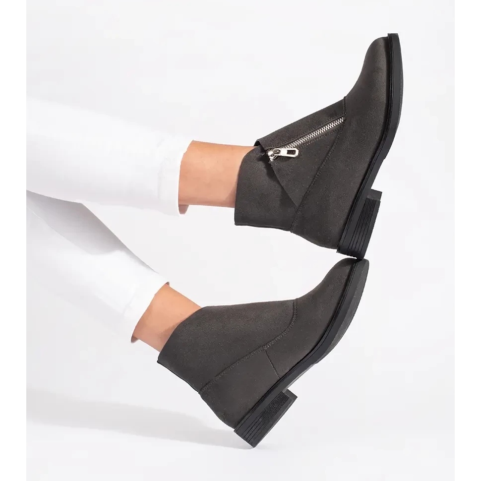Shelvt Shelvt Szürke lapos bokacsizma cipzárral