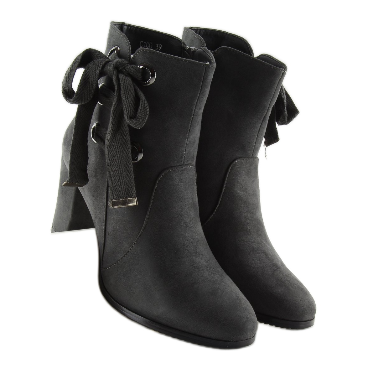 Fedezze fel a szürke C100 magas sarkú bokacsizmák eleganciáját és kényelmet. Ezt a klasszikus női bokacsizmát olyan nők számára tervezték, akik értékelik a stílust és a kényelmet egyaránt. Az öko velúr, amelyből készültek, nem csak divatos megjelenést kölcsönöz nekik, hanem környezetbarát is.