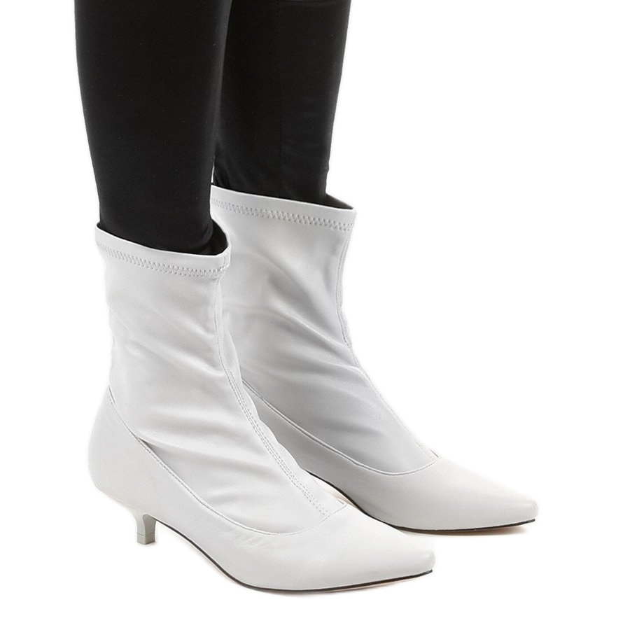 Szürke magas sarkú cipő egy ragemour zoknival - modern csizma, elegáns, karcsúsító vágással. A lekerekített "zokni" felsők és éles orr kombinációja divatos, nőies megjelenést hoz létre, és egy alacsony "kacsa" sarok (3 cm) biztosítja az egész nap stabilitását és kényelmét.