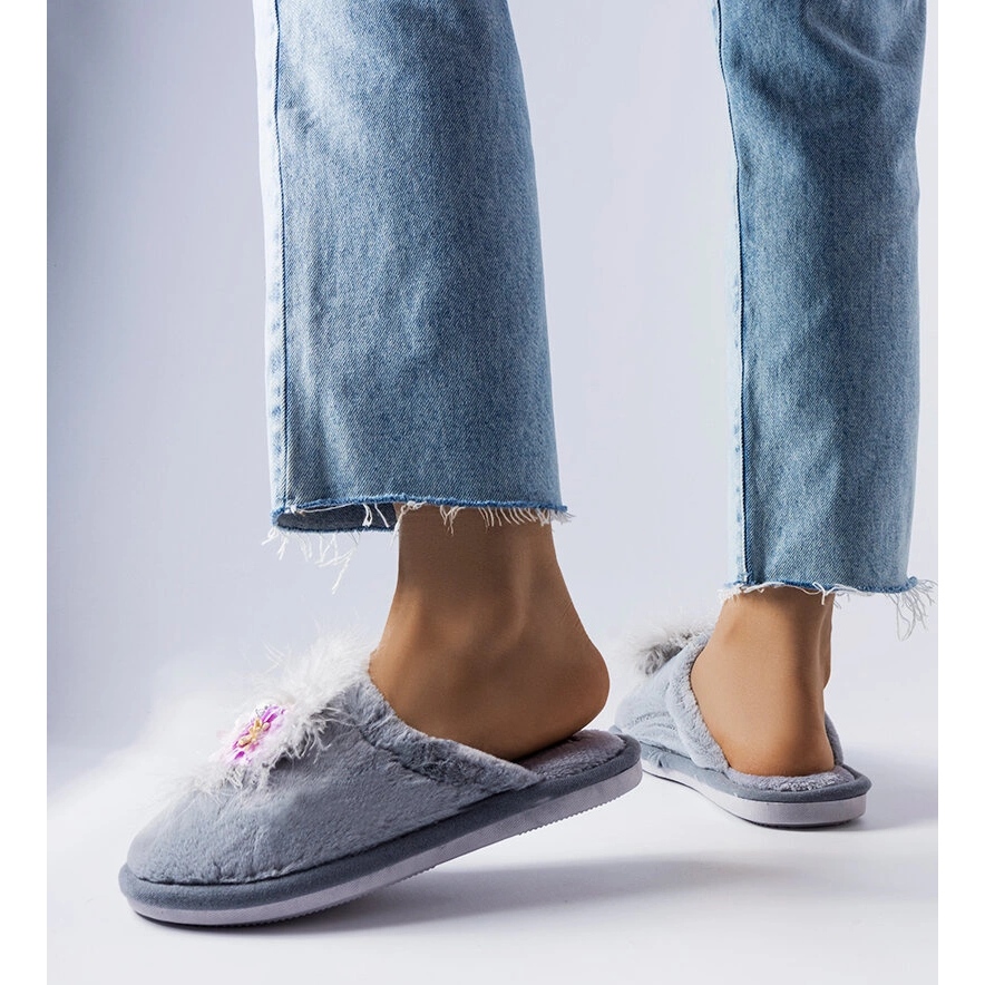 Inna marka Szürke meleg papucs Moly virágokkal