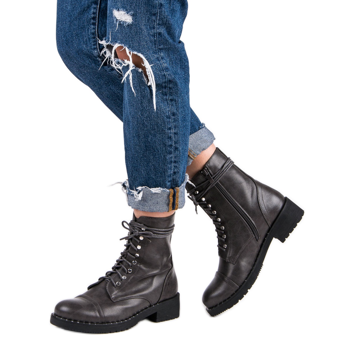 Ezek a szürke munkások tökéletesen passzolnak sokféle stílushoz – az alkalmitól az elegánsabbig. Ezenkívül a kerek orr és a cipzáras fűzős zárás megkönnyíti a felhelyezésüket, és bármilyen lábra illeszthető. A lapos sarkának köszönhetően egész nap élvezheti a kényelmet anélkül, hogy feláldozna a divatos megjelenésről.
