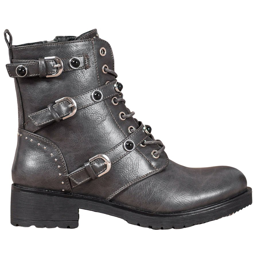 A stílusos szürke Cm Paris munkások tökéletes választás azoknak a nőknek, akik a kényelmet a divatos megjelenéssel szeretnék ötvözni. A bokáig érő felsőrészük, a fűzés és az oldalsó cipzár kombinációja nemcsak esztétikussá, hanem funkcionálissá is teszi őket. A strasszokkal díszített csatos díszítő övek rock karaktert kölcsönöznek nekik, amely tökéletesen illeszkedik az aktuális trendekbe.