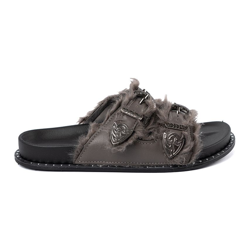 Shelvt Shelvt Szürke papucs szőrme és csapokkal