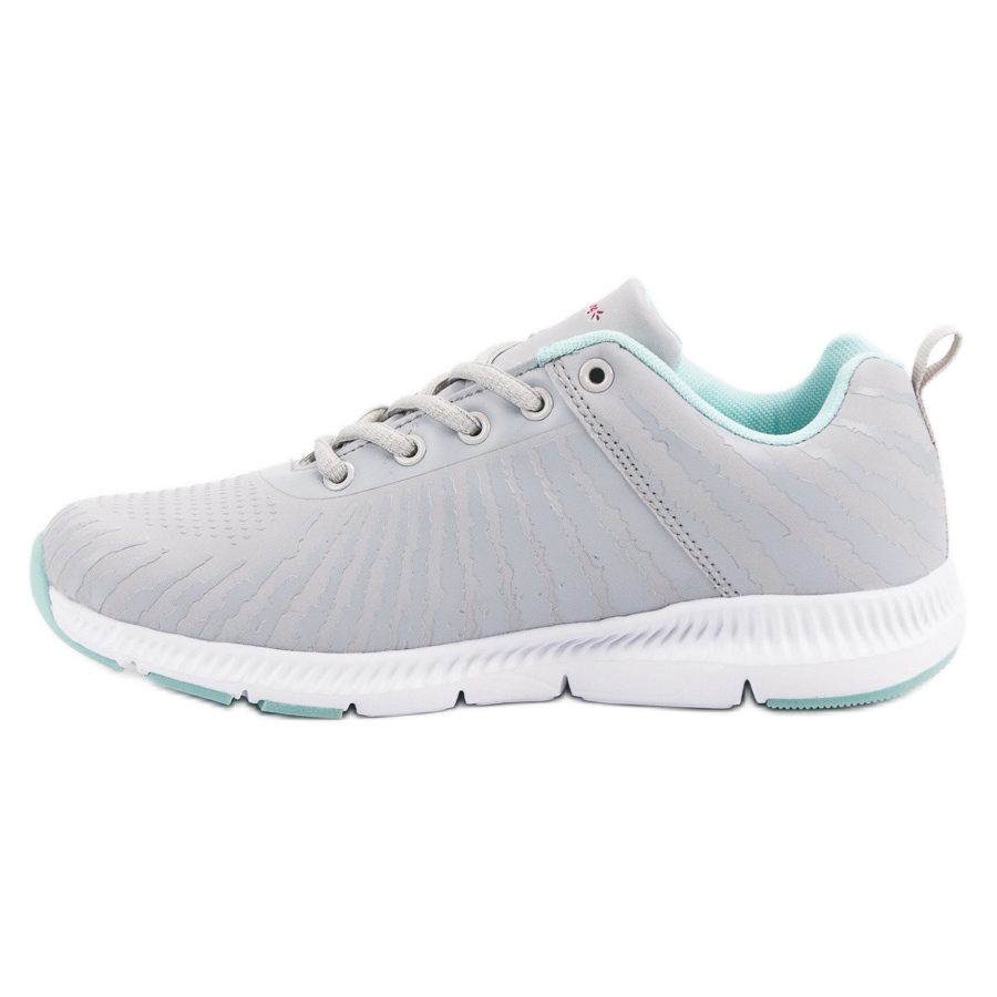 A cipők visszafogott szürke színben kaphatók, fehér és menta ékezetekkel díszítve, ami friss és modern megjelenést kölcsönöz. A beépített, puha saroknak és kerek orrnak köszönhetően magas viselési kényelmet biztosítanak, tökéletesek a mindennapi használatra. A futófelülettel ellátott műanyag talp garantálja a jó tapadást, így különféle felületekre alkalmas.