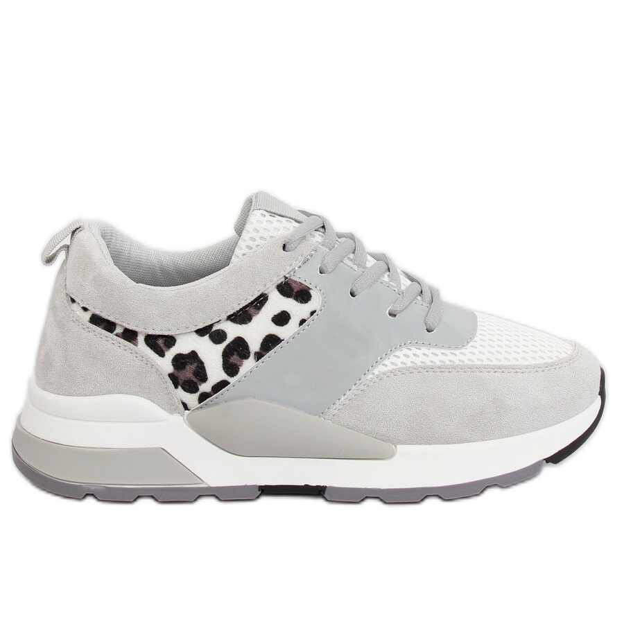 Bemutatjuk a rendkívüli JRX308 Grey sportcipőt, mely a divatos dizájnt és a viselési kényelmet ötvözi. Ezek a magas talpú női cipők minden bizonnyal a ruhatára nélkülözhetetlen elemei lesznek. Nemcsak elegáns szürke színükkel különböztethetők meg, hanem egyedi leopárd motívummal is, amely a cipők oldalát díszíti, merész karaktert kölcsönözve nekik.