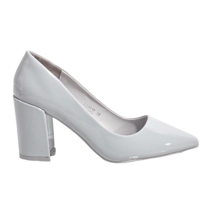 A női LE061P magassarkú pumpák elegáns ajánlat minden divatos nő számára, aki értékeli a kényelmet és a stílust. A kiváló minőségű, világosszürke ekobőrből készült cipők sima, lakkozott felületükkel lenyűgözőek, ami elegáns karaktert kölcsönöz nekik.