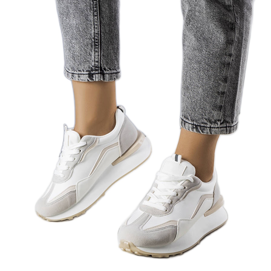 A BM Grey Sneakers az Ada Beige Platformon a városi stílus esszenciája a viselet kényelmével kombinálva. Az Ada női sportcipőket a fűzés és a vastag, lapos talp jellemzi, amely nemcsak centiméterekkel növeli a magasságot, hanem a profilozott futófelületnek köszönhetően stabilitást is biztosít. Elegáns fehér/bézs/szürke színkombinációjával szemet gyönyörködtető BM (KeeShoes) cipők teljesen új szintre emelik a hagyományos sportkialakítást.