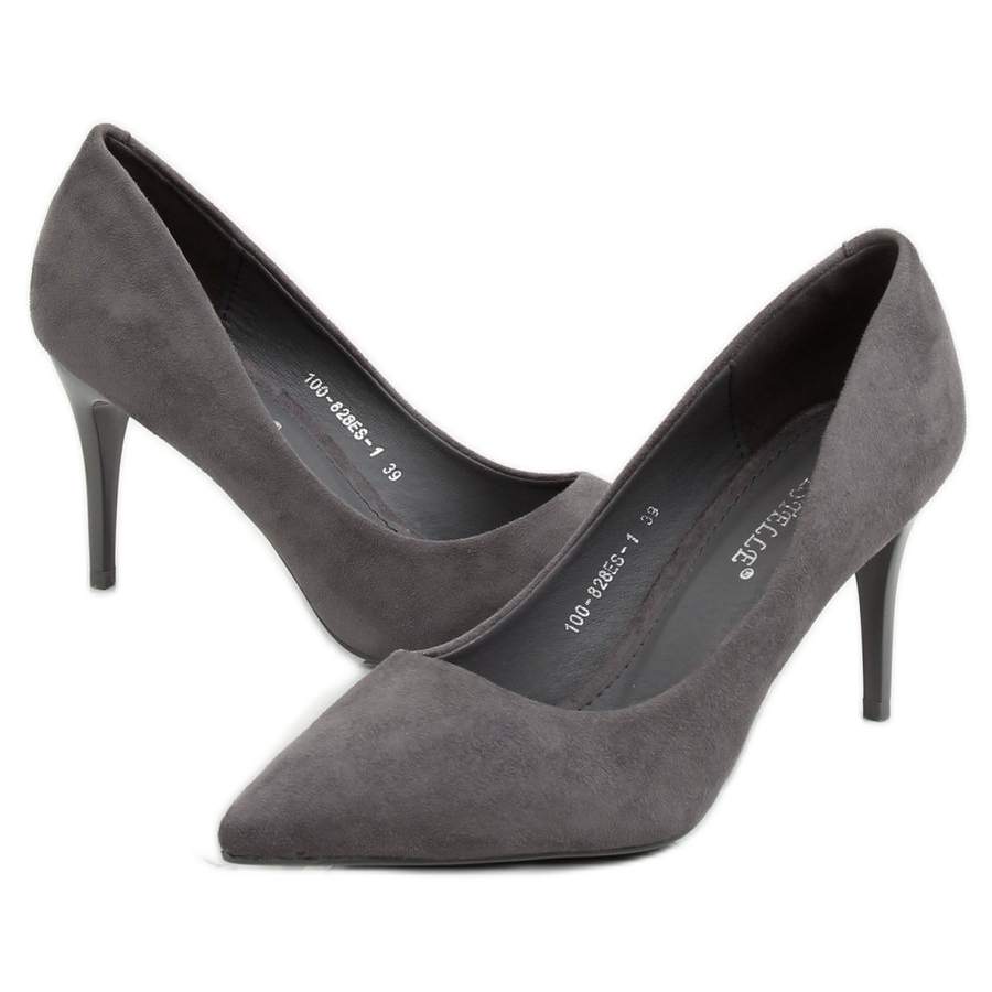 Fedezze fel a páratlan eleganciát a szürke velúr tűsarkúkkal, 100-828ES-1 Grey. Ezek a klasszikus női pumpák minden ruhatárban nélkülözhetetlenek. A karcsú, 8,5 cm-es saroknak köszönhetően tökéletesen kiemelik a lábak természetes vonalait, finom bájt adnak és karcsúsítják az alakot.