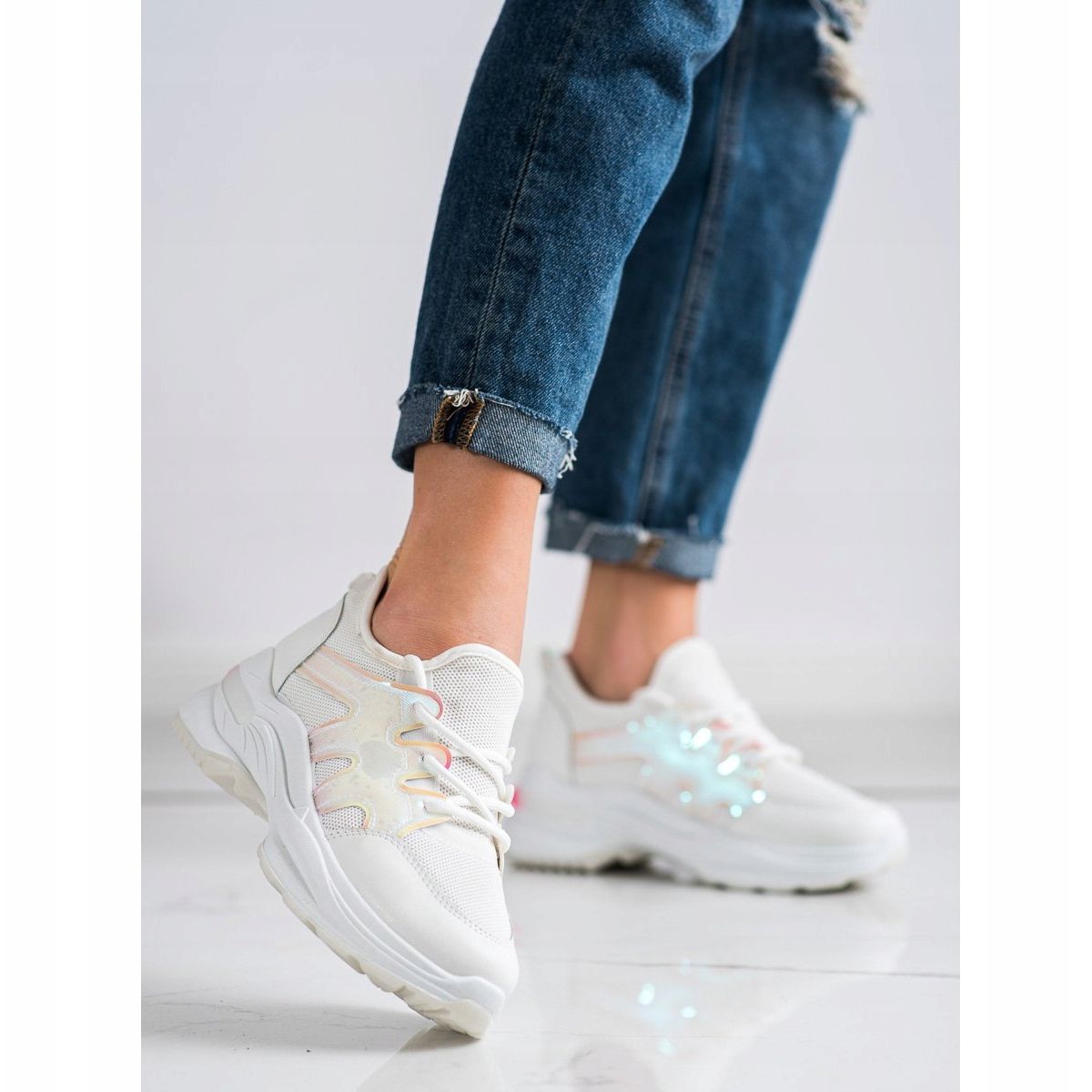 Részletek: SHELOVET Tavaszi cipők Holo effektussal fehér