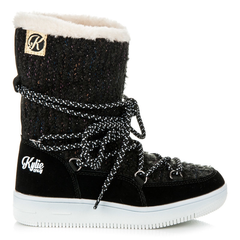 Kylie - Fekete téli gyerekcipő fehér talppal