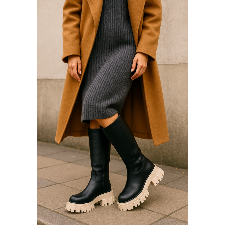 A hatalmas talp a 2025 -es tél abszolút slágere! A vastag, traktor talpon lévő csizma nemcsak centiméter magas, hanem biztosítja a stabilitást a csúszós felületeken is. Ez a tendencia tökéletesen illeszkedik a Gorpcore esztétikájához, kombinálva a funkcionalitást a városi stílushoz. Válasszon olyan kontrasztos talpú modelleket - fekete csizmával, fehér vagy bézs talppal, érdekes vizuális hatást hoz. Ezek a cipők tökéletesek lesznek a túlméretezett kabátokkal és gyapjú ruhákkal kombinálva.