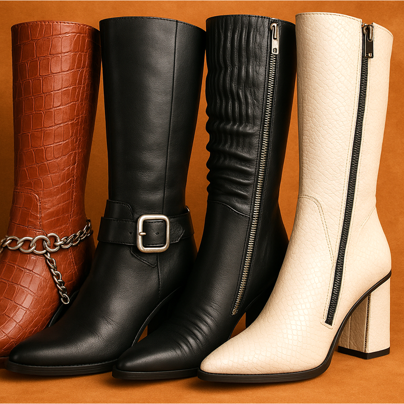 A részletek a szokásos csizmákat készítik az igazán divatosoktól. A 2025 -ös téli szezonban figyeljen a következőkre: Vintage ruhák, láncok, amelyek sziklafigurát adnak, a harmonikára emlékeztető felső részre, kontrasztos varrással és aszimmetrikus zárakra. A minimalista modellek az érdekes bőr textúráknak köszönhetően szereznek karaktert - a kígyónyomtatás, a krokodilok mintája vagy a finom préselés a tetején.