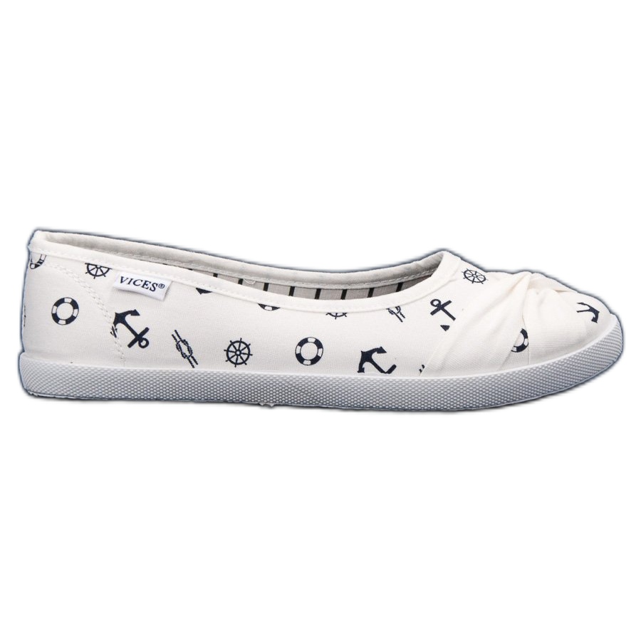 A Vices Vinceza tengeri balett lakásai ideális választás a divatos és kényelmes stílust kedvelő nők számára. Ez a gyönyörű fehér színű felbújós textilcipő tökéletesen passzol a különböző stílusokhoz - farmerhez, légies ruhákhoz és sportszoknyához egyaránt.