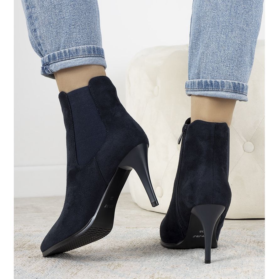 A sötétkék Varela magas sarkú bokacsizma tökéletes választás minden nő számára, aki eleganciát és stílust szeretne varázsolni őszi ruhatárába. A kiváló minőségű velúr ökológiai bőrből készült, gyönyörű cipő nemcsak fenomenálisan néz ki, hanem kényelmes viseletet is biztosít. Finom pontjuk tökéletesen karcsúsítja a lábfejet, a magas tűsarkú pedig kiemeli a női alak előnyeit.