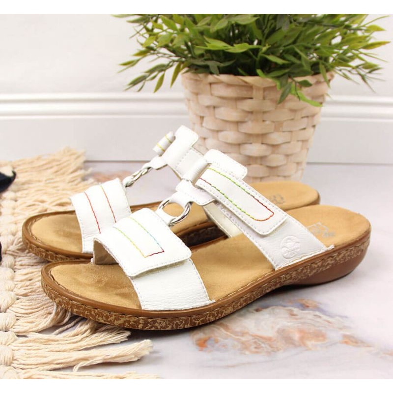 A Rieker W RKR511 bőr tépőzáras flip-flop fehér színben tökéletes választás azoknak a nőknek, akik értékelik a kényelmet és a divatos dizájnt a nyári napokon. A kiváló minőségű természetes bőrből készült cipők az eleganciát és a lezser stílust ötvözik, így tökéletesek sétákhoz, vásárláshoz vagy baráti találkozáshoz.