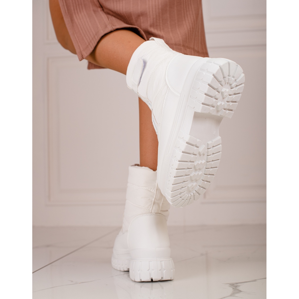 Részletek: Tépőzáras Shelovet fehér női hócsizma
