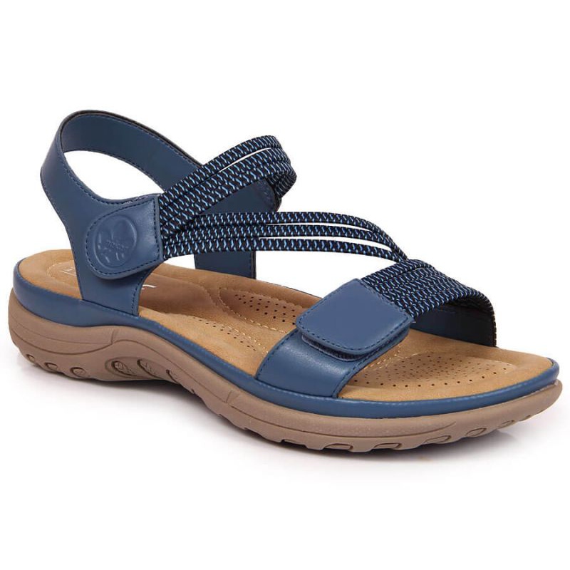 Fedezze fel a tökéletes nyári szandált - Rieker W V8873-14 gyönyörű kék színben. Ezeket a kényelmes és stílusos szandálokat olyan nők számára készítették, akik értékelik a kényelmet a mindennapi használat során. A szintetikus felsőrésznek és a textil bélésnek köszönhetően a lábfej jól szellőzik, így a szandál tökéletes nyári sétákhoz, turistautakhoz.