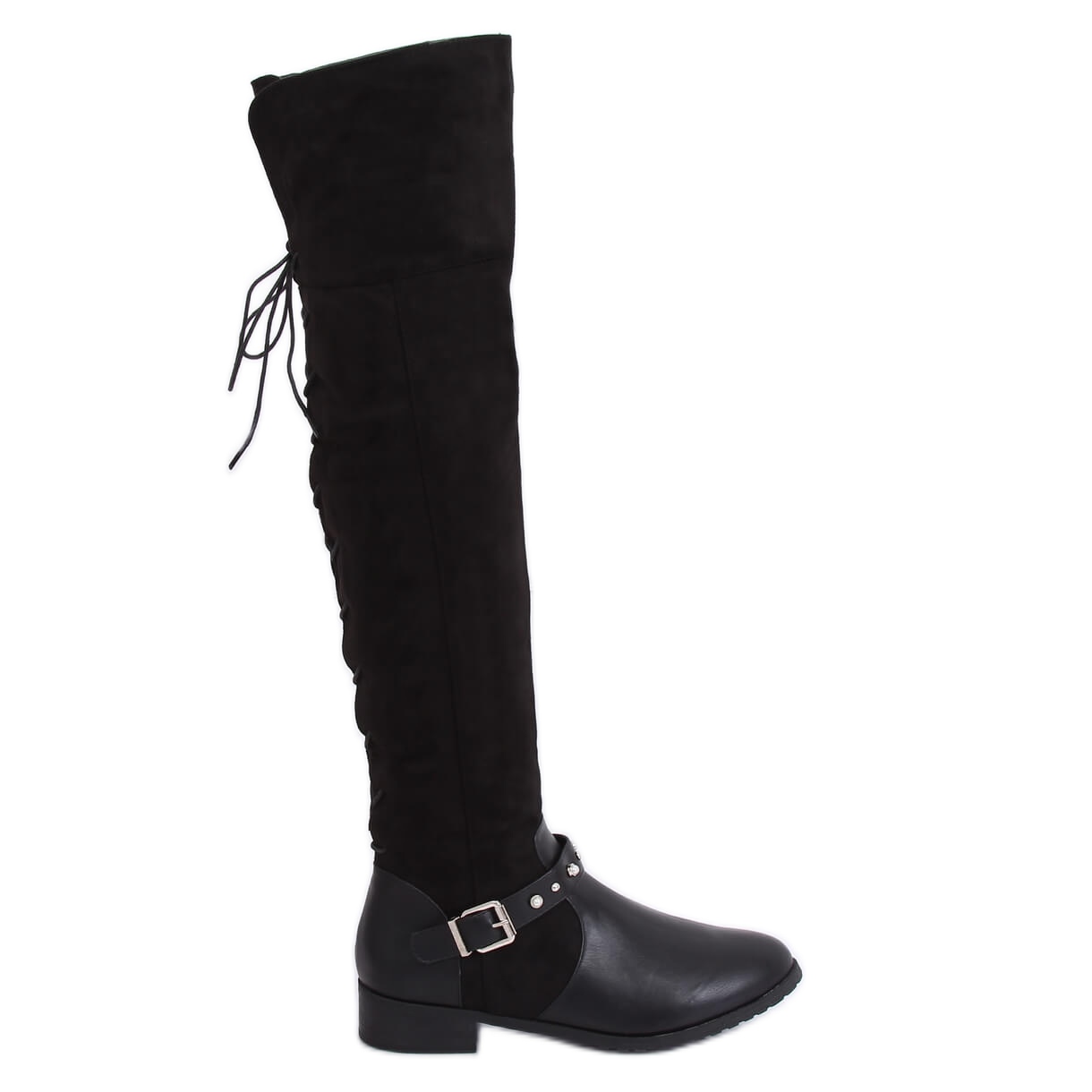 Inna marka Térdig érő csizma lapos sarokkal fekete 688-3 Fekete