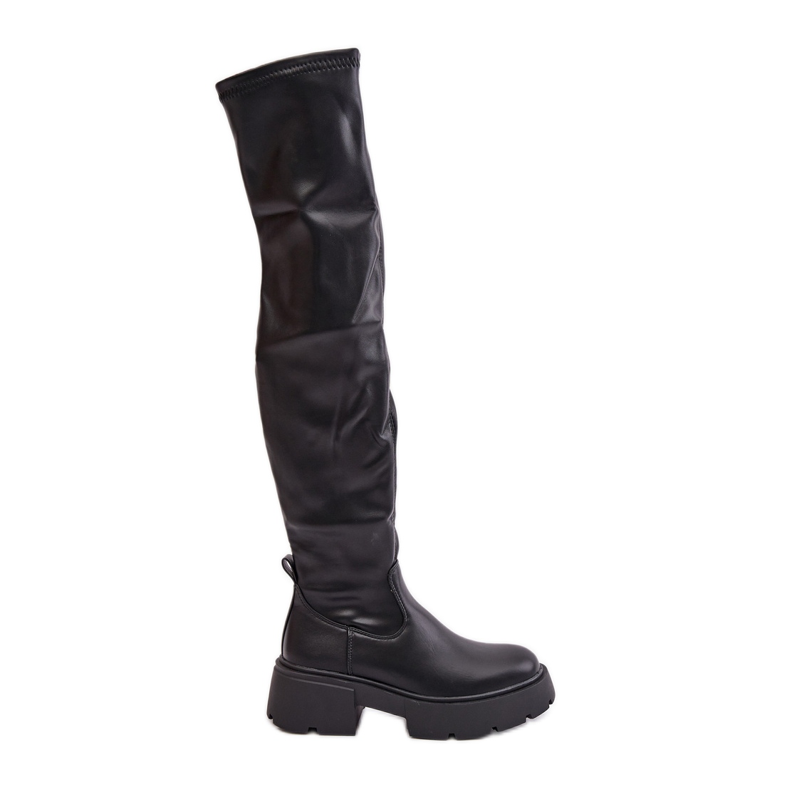 Inna marka Térdig érő csizma platformpal és lapos sarkú ökobőrből, fekete Loreviana